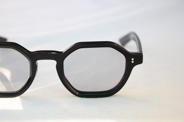 八角形のようなレンズシェイプが ちょっと個性的で、でも不思議と顔なじみもよく。 遊び心がありながら、大人っぽく掛けられる一本です。